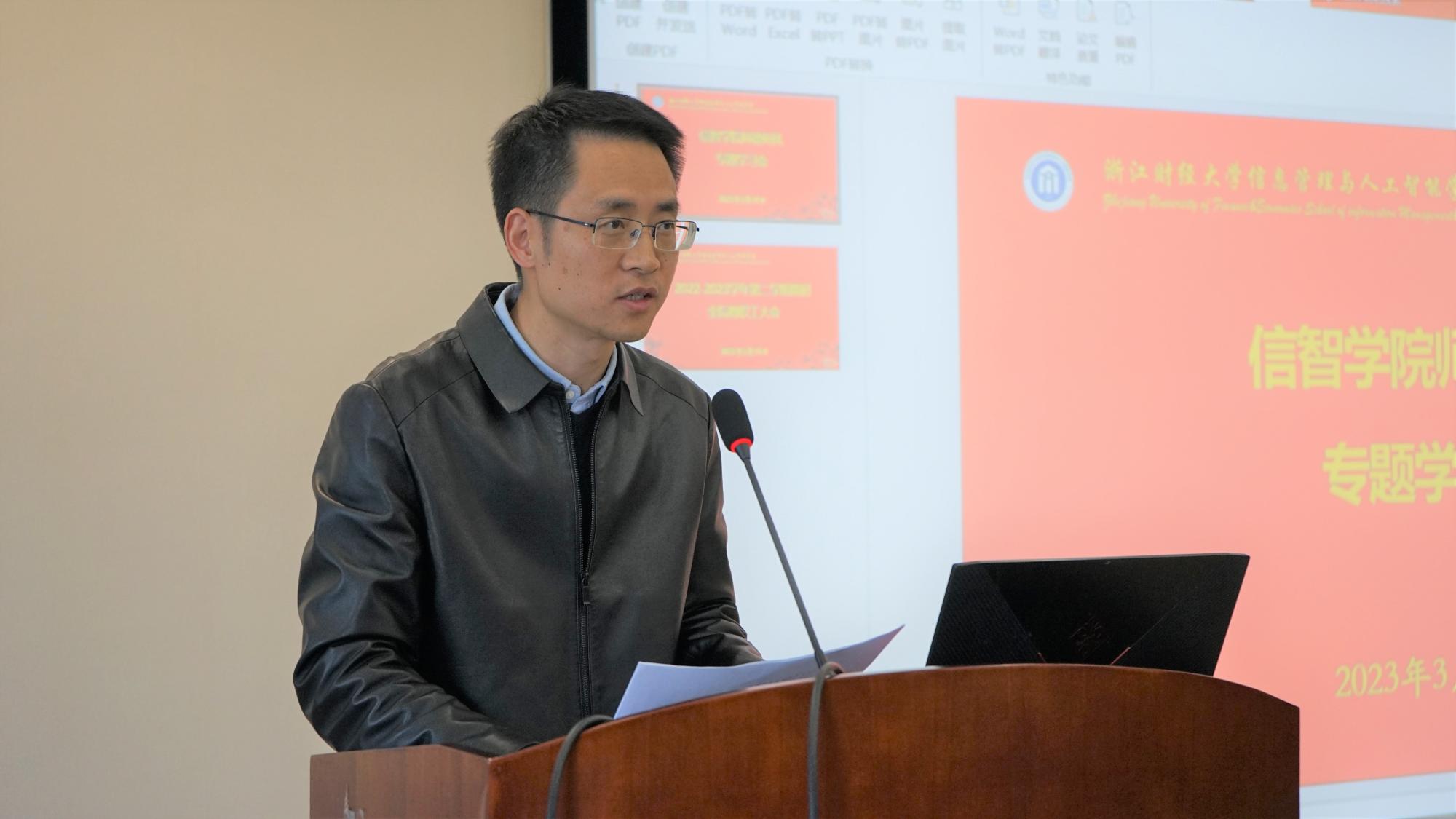 隆清琦副经理传达学校期初教学工作会议相关精神,并就国家一流课程申报做动员。